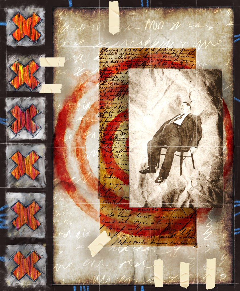 artfat guy in chair, with target and X’s collage, paint, chalk, ink Share this: Click to share on X (Opens in new window) X Click to share on Facebook (Opens in new window) Facebook Like Loading... Standard